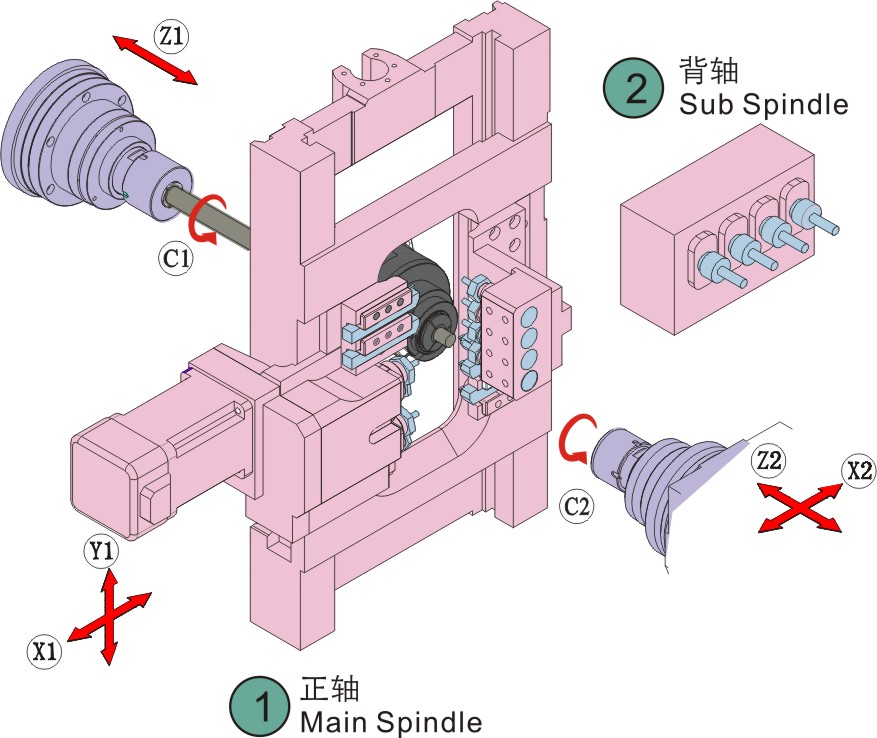 移动轴数 | 5轴 | X 1 、Y 1 、Z 1 、X 2 、Z 2 | |